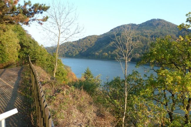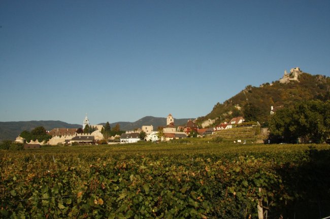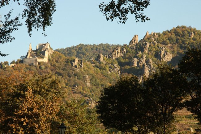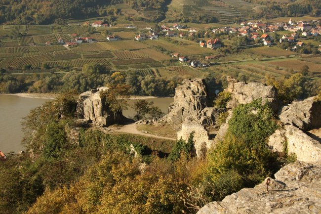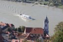 Blick von der Burgruine Dürnstein in der Wachau auf die Donau