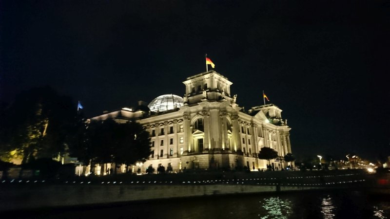 Blick auf den Reichstag bei unserer Schifffahrt während des Berliner Lichterfestes