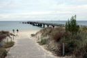 Blick auf den Strand und die Seebrücke von Göhren
