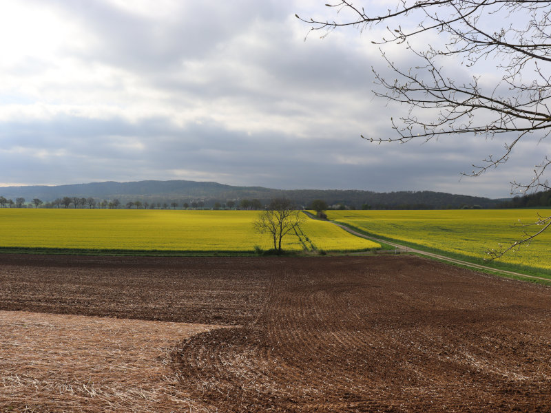 Blick von der Mühle auf die Rapsfelder