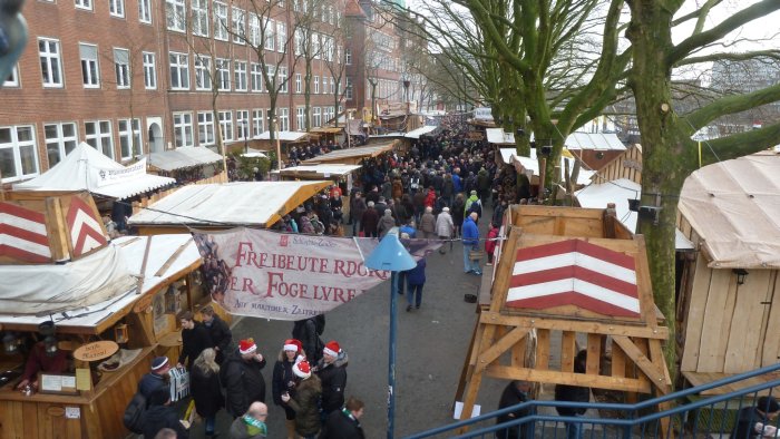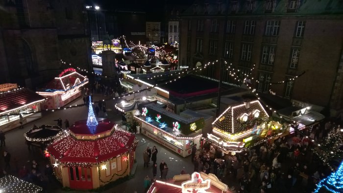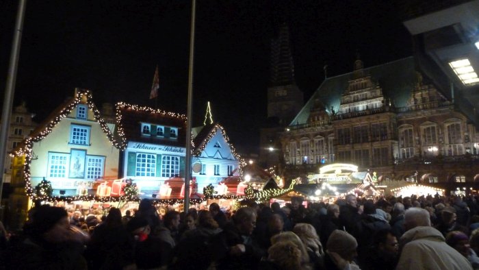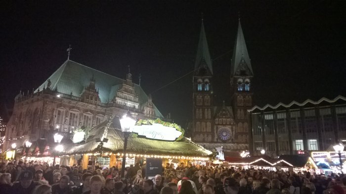 >Am 12. Dezember war der Bremer Weihnachtsmarkt das erste Mal Ziel unser Weihnachtsmarkt-Tour, obwohl er urpsrünglich gar nicht auf unserem Plan stand. Eigentlich wollten wir zusammen mit Yvonne, Anika, Florian und Christina an diesem Tag die Weihnachtsmärkte in Oldenburg und Wilhelmshaven besuchen, jedoch haben die Umstände, dass Christina noch nie auf dem Bremer Weihnachtsmarkt war und vor allem, dass das Wetter in Bremen länger trocken sein sollte, den Plan spontan geändert. Wir haben diese Planänderung nicht bereut und sehr viel Spaß auf dem schönsten Weihnachtsmarkt Europas gehabt.