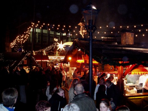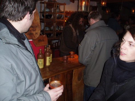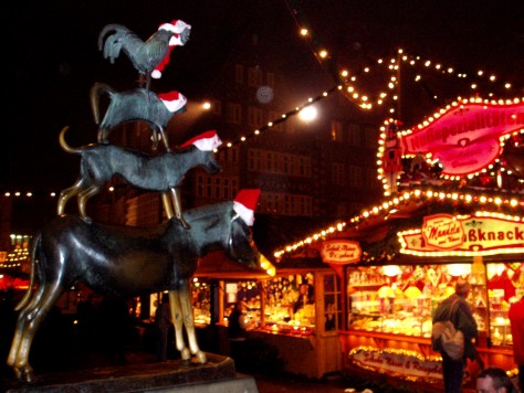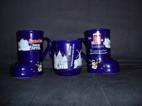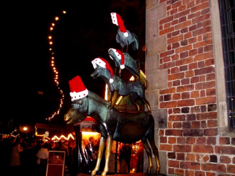 Am 8.12.2004 stand unser obligatorischer Weihnachtsmarktbesuch in Bremen auf dem Programm. Nach dem Nieselregen im letzten Jahr, war das Wetter diesmal auf unserer Seite. Neu war dieses Jahr auch der "Winterzauber an der Schlachte", den wir natürlich nicht auslassen durften. Und die gute Nachricht ist, es gibt auch dort Glühwein, sogar mit Sonderbechern. Anders als im letzten Jahr war diesmal auch die Trageordnung der Weihnachtsmützen. Nachdem unsere Mitstreiter ihre Mützen vergessen hatten (Da muss wohl die Vorfreude auf den Glühwein die Sinn vernebelt haben), haben wir unsere Mützen einfach mal den Stadtmusikanten aufgesetzt. Das hat dann auch bei den umstehen Menschen für Erheiterung gesorgt.