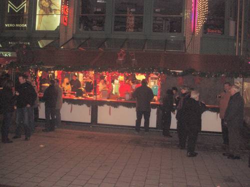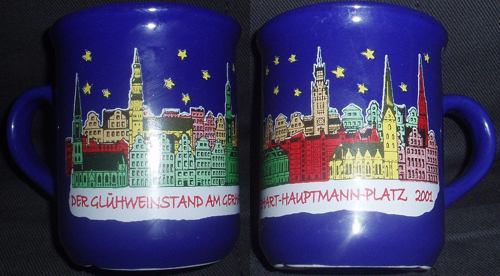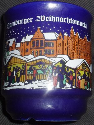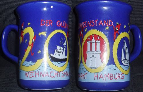 Drei Jahre nach unseren ersten Besuch auf dem Hamburger Weihnachtsmarkt, führte uns der Weg am 1. Advent 2005 wieder hier her, diesmal allerdings nur für eine gute dreiviertel Stunde. Diese hatten wir nämlich auf unserem Rückweg vom Schweriner Weihnachtsmarkt noch Zeit am Hamburger Hauptbahnhof. Und da der Weihnachtsmarkt hier ja direkt am Hauptbahnhof schon beginnt, sind wir noch schnell mal kurz hin um den diesjährigen Becher abzuholen. Dabei sind wir an einen sehr netten Glühweinverkäufer geraten, der uns außerdem noch Becher der Jahre 2000 und 2001 geben konnte. Unser Kurzausflug hat sich also gelohnt.
