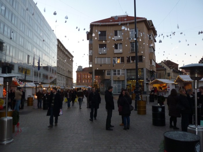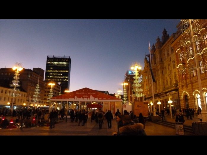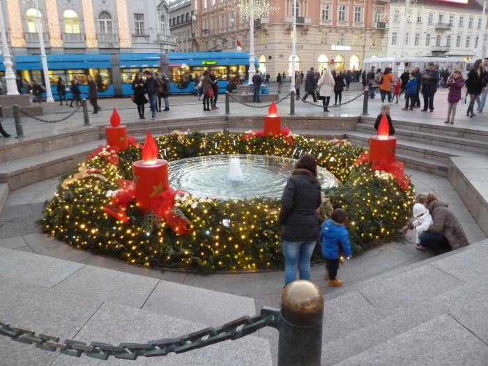 Den Weihnachtsmarkt von Zagreb haben wir mit Yvonne und Tibor am 19.12.2014 besucht. Eingebettet in der gesamten Innenstadt erzeugt der Weihnachtsmarkt eine recht schöne Stimmung, wobei bei sonnigen 14 Grad ein wirkliches Winterfeeling nicht aufkommen möchte. Es gibt aber leckeren Rum-Punsch und sogar passende Zagreber Adventsbecher. Gut gefällt uns auch ein im einem Brunnen integrierter Adventskranz sowie natürlich der tolle Ausblick vom Aussichtspunkt "Zagreb Eye" auf den Hauptplatz des Weihnachtsmarktes. Wenig weihnachtliche "Chuck Norris"- und "Bruce Lee"-Hot-Dogs sorgten dann schließlich noch für unser leibliches Wohl, bevor unsere Fahrt weiter in den Süden Kroatiens ging.